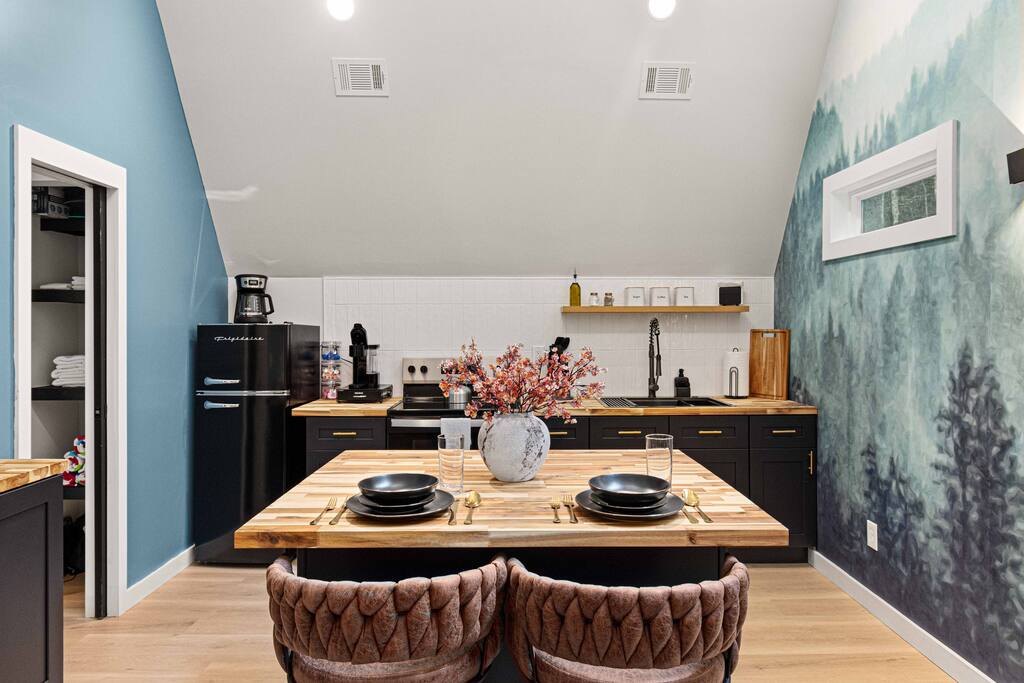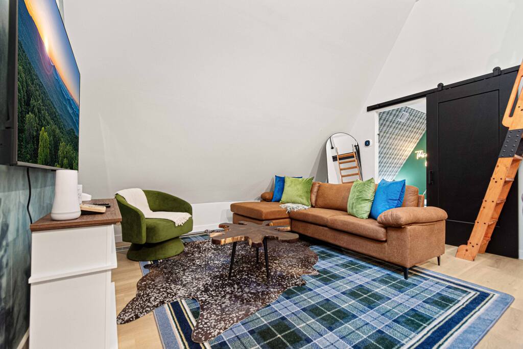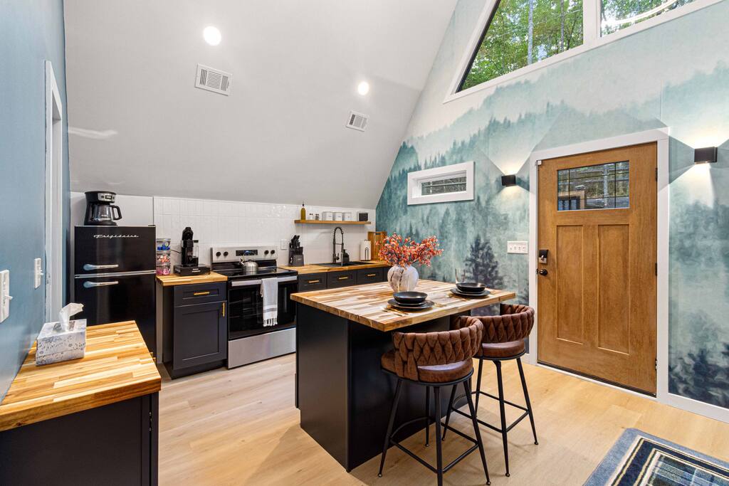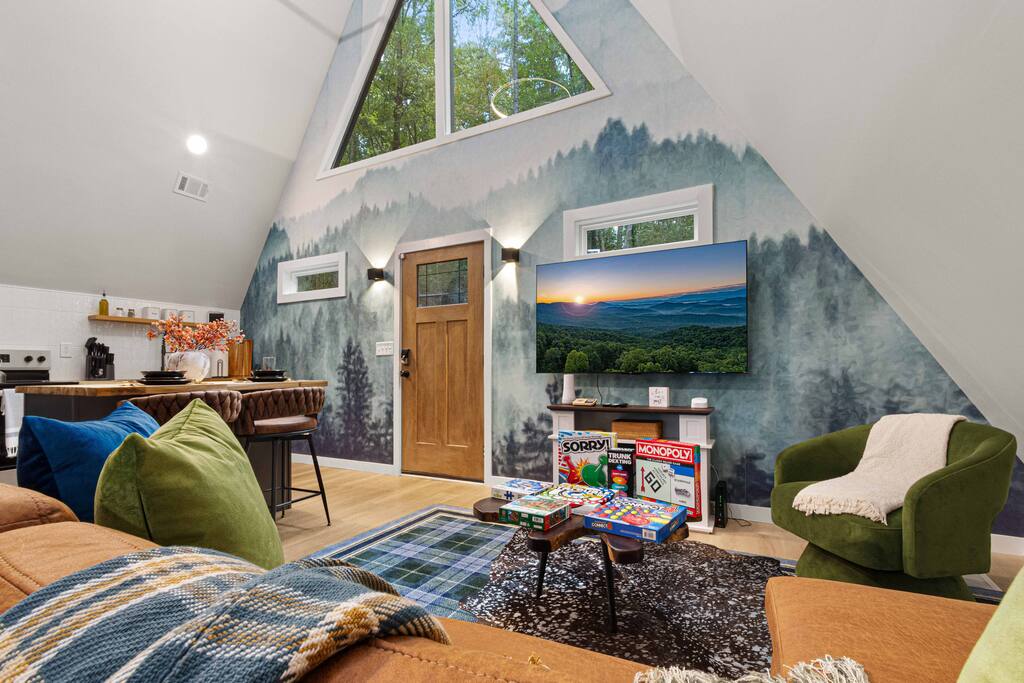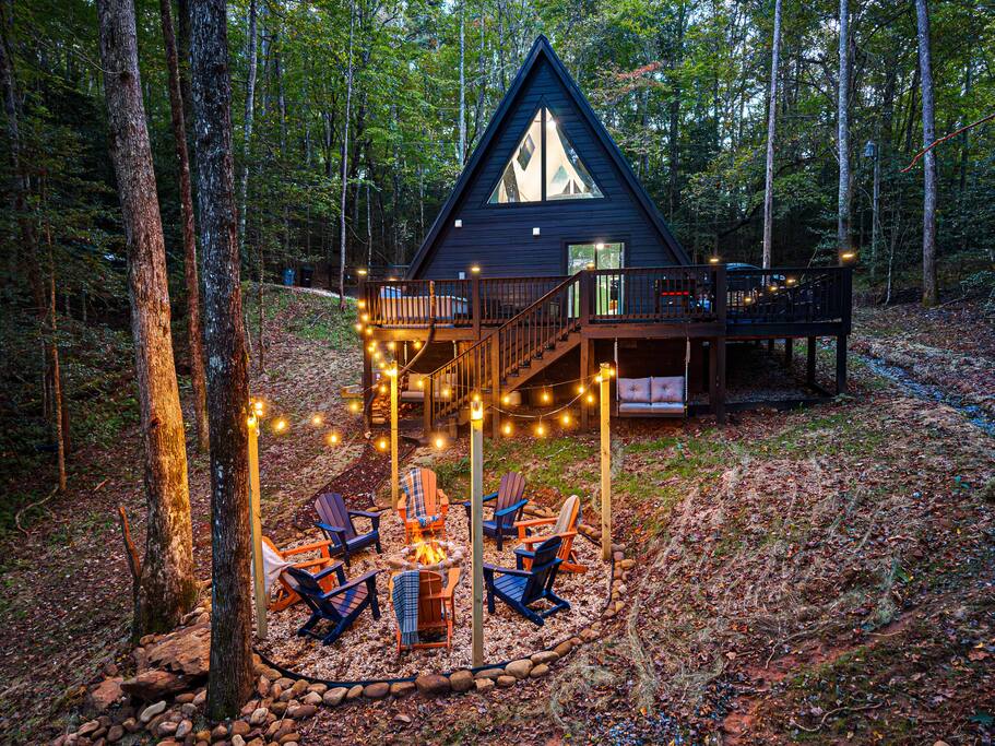 Tucked away among the whispering pines of the Blue Ridge Mountains, The Cozy-A offers a serene escape where modern comfort meets rustic charm. This contemporary A-frame cabin blends thoughtful design with the quiet beauty of the forest, creating a space perfect for couples, families, or small groups looking to slow down and reconnect. The Space Step inside and feel an immediate sense of calm. The open-concept living area features soaring ceilings, warm wood accents, and a sleek electric fireplace that casts a gentle glow across the room. The kitchen is fully equipped with everything you need to prepare meals at home - from a Keurig and drip coffee maker for your morning brew to quality cookware, wine glasses, and a full-size oven for evening dinners. Large windows frame the surrounding forest, allowing natural light to pour in while maintaining a cozy, secluded feel. The main floor bedroom offers a plush queen bed and direct access to the back deck - the perfect spot to sip coffee as sunlight filters through the trees. Upstairs, a private loft holds a second queen bed tucked beneath the A-frame’s slanted roof, ideal for curling up with a book or gazing out at the forest beyond. The full bathroom includes fresh linens, a washer and dryer, and thoughtful touches to make your stay comfortable and convenient. Outdoor Living The outdoor spaces invite both adventure and relaxation. Ease into the bubbling hot tub or unwind in the barrel sauna after a day of exploring Blue Ridge. As the evening sets in, gather around the fire pit for stories and stargazing, surrounded by the gentle sounds of the woods. The driveway doubles as a pickleball and basketball court, adding a playful touch for guests who love a little friendly competition. Location While The Cozy-A feels blissfully remote, it’s just minutes from local favorites like Mercier Orchards, where you can pick fresh fruit or enjoy homemade baked goods. The charming downtown of Blue Ridge is about 15 minutes away, offering boutique shopping, cozy restaurants, and scenic stops along the Toccoa River. Perfect For This cabin is designed for guests seeking a peaceful mountain retreat without sacrificing comfort or convenience. Whether you’re celebrating an anniversary, planning a family getaway, or simply craving quiet time in nature, The Cozy-A provides the perfect balance of seclusion, style, and warmth. From crisp morning walks among the trees to relaxing nights by the fire, every moment here feels like a breath of fresh mountain air - simple, rejuvenating, and distinctly Blue Ridge.
